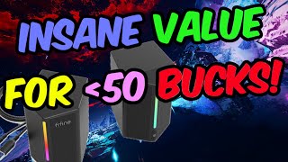 Striking and compact stereo computer speakers with an integrated amplifier, USB power, controlled LED lighting, volume control on the cable, and a standard analog input. They feature a stylish exterior design that easily fits into any home interior and can become a true decoration of a gamer's workspace. Positioned as a mid-range product for 2024. Differentiated from budget models by higher quality sound and superior build.