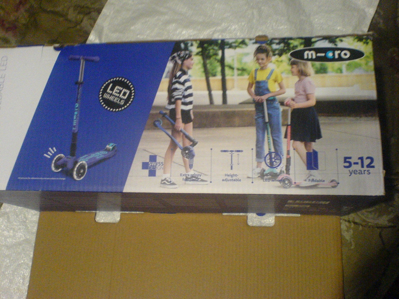 This is a children's kickboard scooter, which is characterized by an increased level of safety when riding. So, the scooter has 3 support points, which allows the board to always remain stable. On such a model, any child can safely and effectively learn to ride, even if he has no experience in using wheeled vehicles. The Micro Maxi Deluxe LED children's scooter is equipped with a practical plastic construction with a rubberized deck.