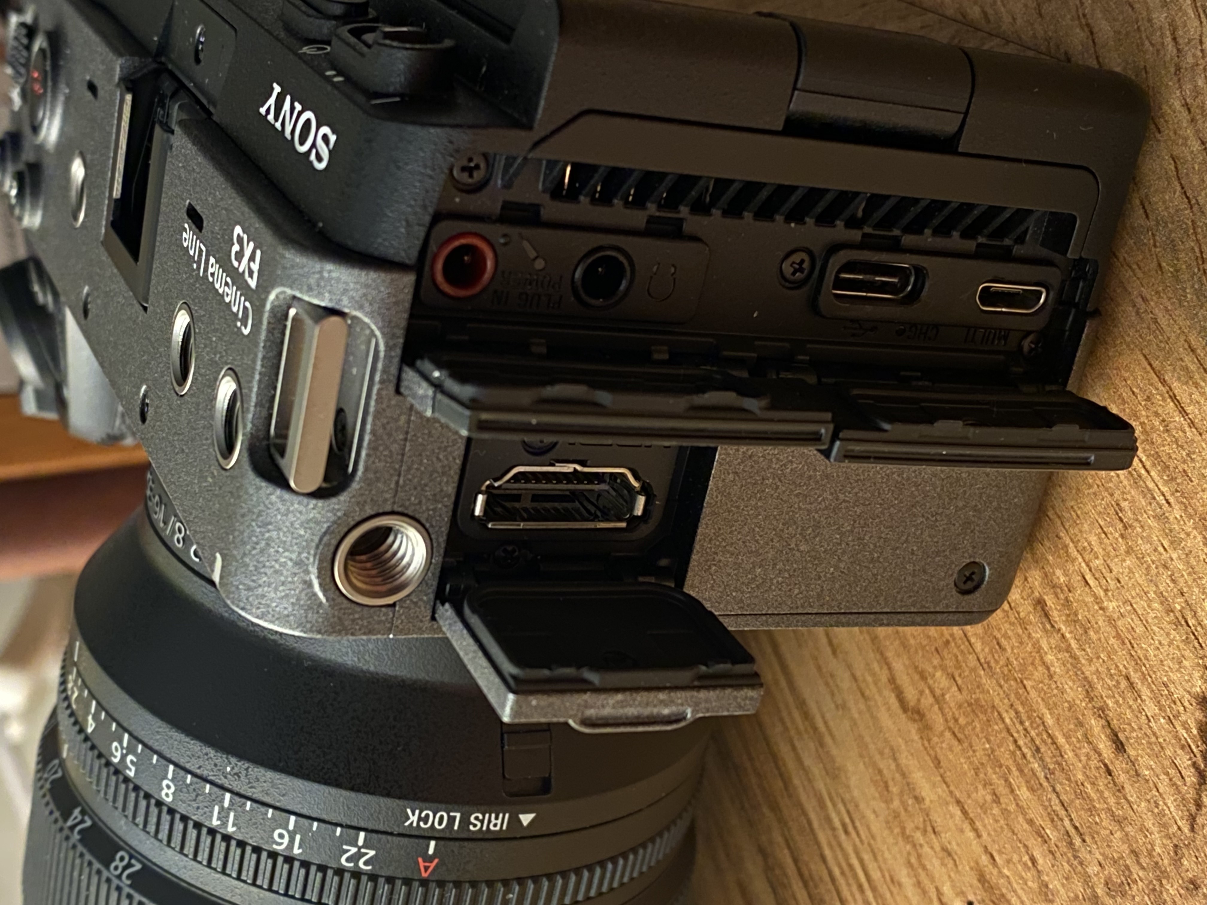 The fan is placed outside the dust- and moisture-resistant body. The surface of the camera is equipped with 1/4” sockets for attaching additional accessories to aid the videographer. Now for the main part — the Sony FX3 body records 4K video at 60 fps from the full width of the sensor or at 120 fps with a slight crop (approximately 10% of the image is trimmed).