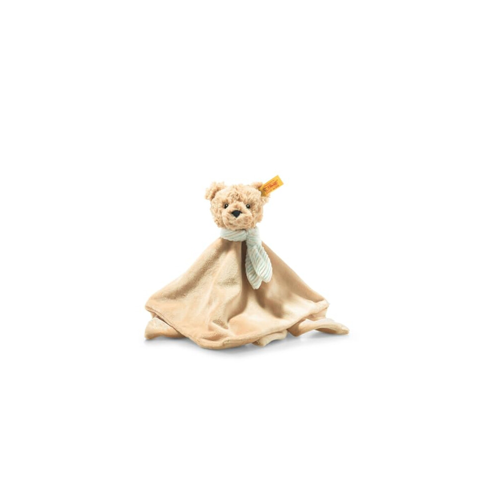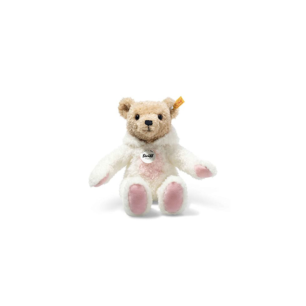 Our beige Ben Teddy Bear in Suitcase measures 21 cm tall and is made of cuddly soft teddy fleece. He will keep his favourite humans company on any adventure. As part of the 120th teddy bear anniversary series, he displays all of the features that set his family apart – a stainless steel Button in Ear, centre seams, contrasting paws, characteristic bear eyes and an embroidered nose. His blue suitcase with a Ben and Mila motif has room for him ... or for a quick tidy up. Simply close the suitcase, pop Ben Teddy Bear on top and it's job done!