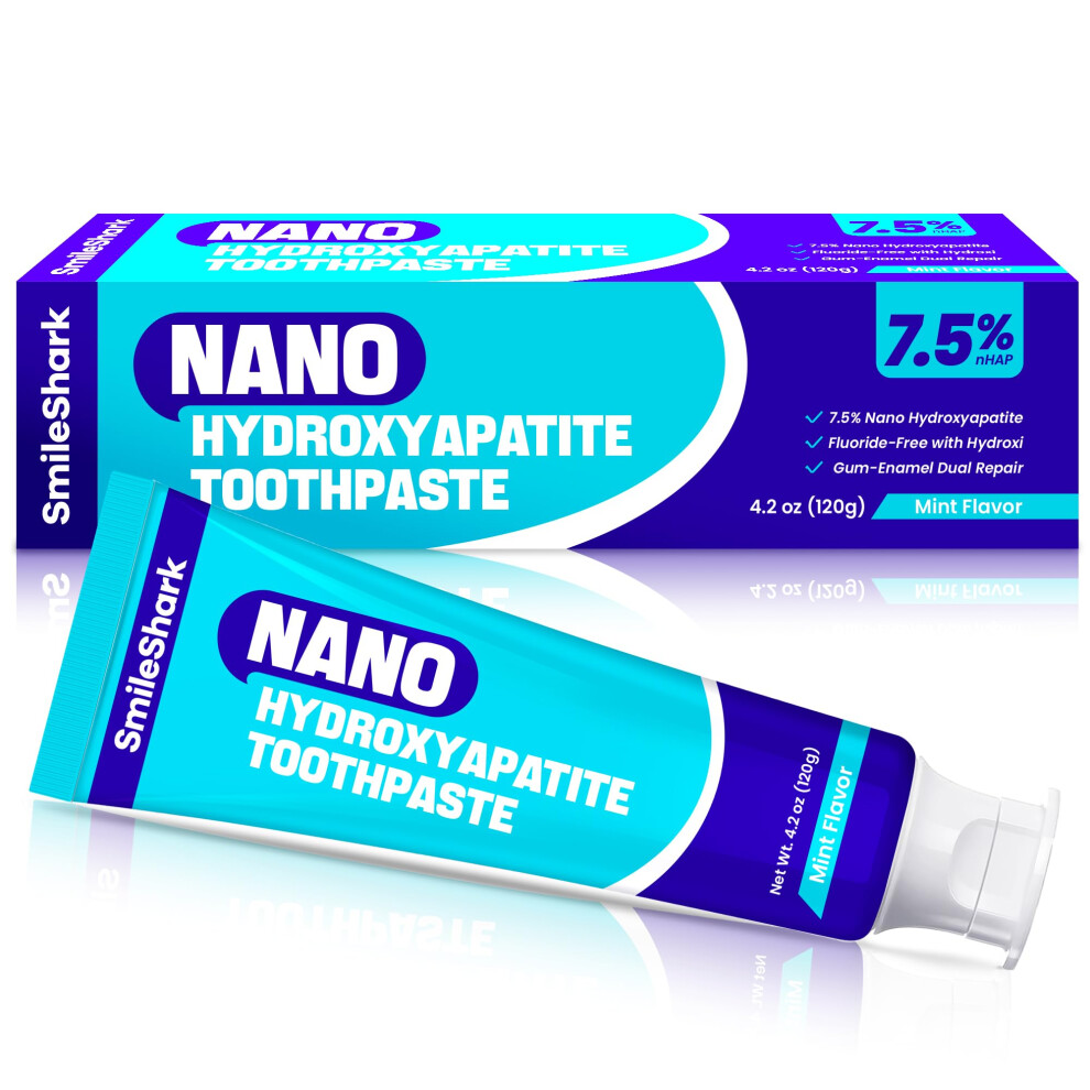SmileShark Nano Hydroxyapatite Toothpaste (4.2 Oz) Fluoride Free Toothpaste with Mint Flavor Remineralizing for Sensitive Teeth Gentle and Effective...