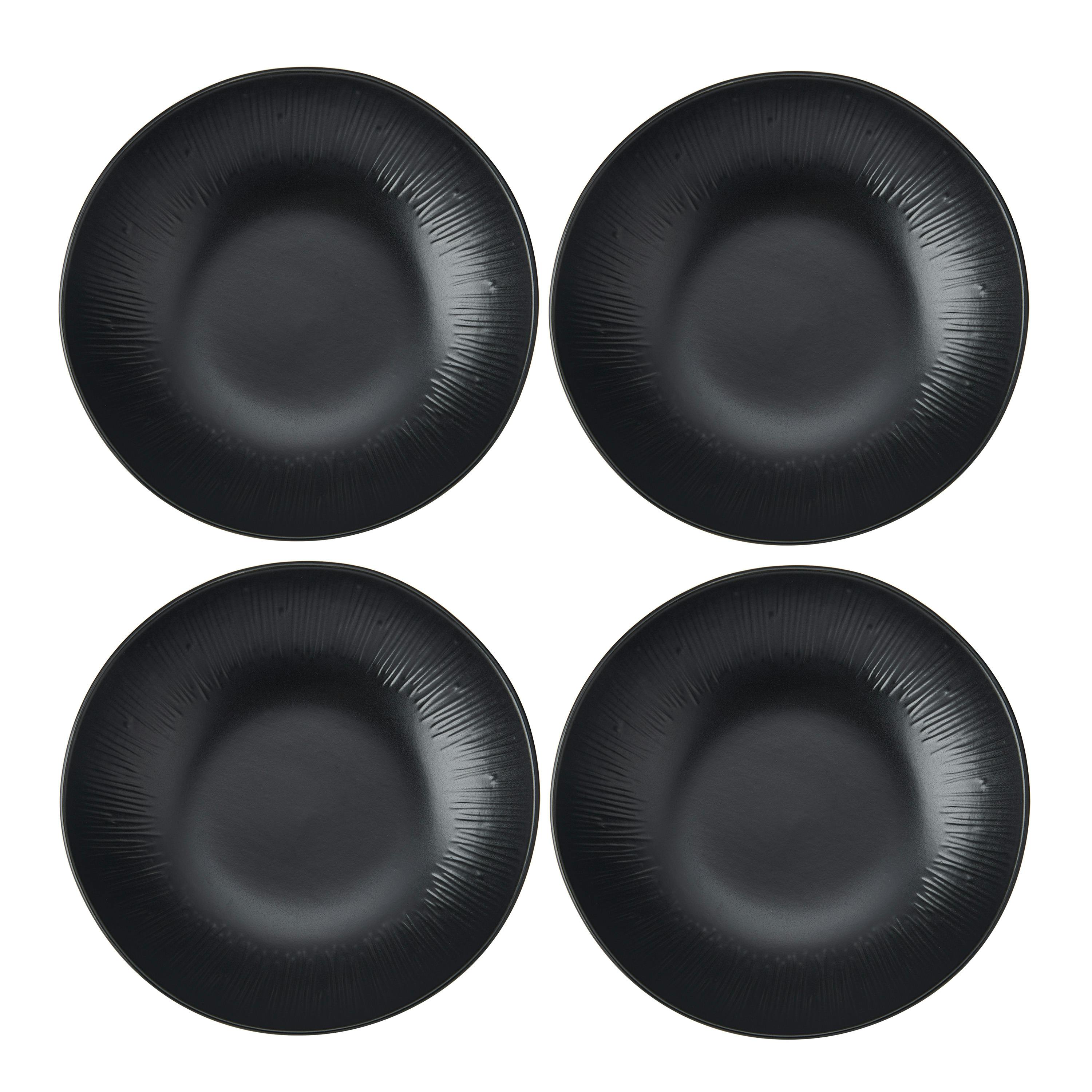 From Mikasa, the Jardin Midnight 4-piece pasta bowl set brings botanical-inspired detailing to the table with a confident, contemporary finish. Designed to help you create a considered setting for eve more→rything from midweek meals to special occasions, each stoneware bowl is finished in a matte black glaze with debossed organic patterning for subtle texture and depth. Made to be as versatile as it is distinctive, these pasta bowls suit everyday dining and alfresco meals alike, offering a bold contrast when styled against a white backdrop. Each piece in the Mikasa Jardin Midnight collection is subtly different, adding to the character of the set. For easy use and care, the bowls are microwave and …