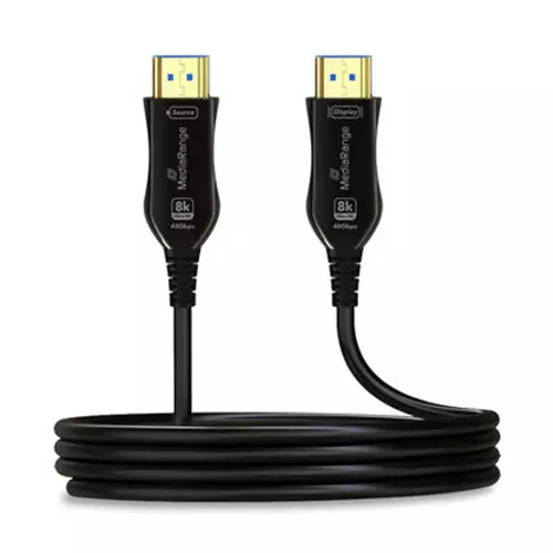 MediaRange Active Optical HDMI Ultra High Speed Ethernet Cables are engineered to deliver stunning visuals and seamless connectivity for your audio-visual experience whether for entertainment gaming o more→r professional presentations. Our wide range of dependable high quality cables guarantees a reliable and efficient connectivity solution for various applications. With data transfer rate of up to 48 Gbps this cable is designed to meet the demands of modern digital devices.