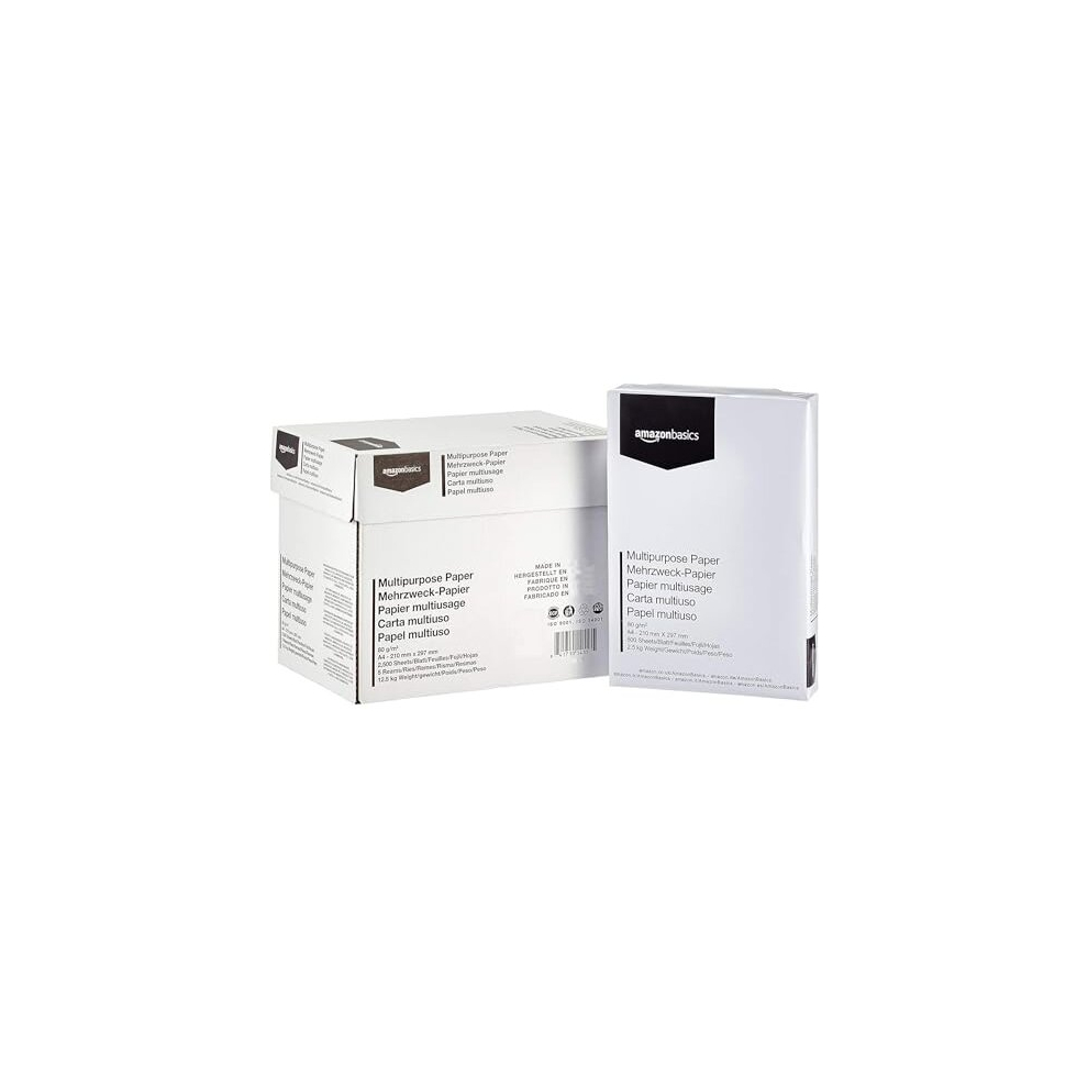 Amazon Basics Multi-purpose Copy Printer Paper, A4 80 gsm, 2500 Count (Pack of 5), White