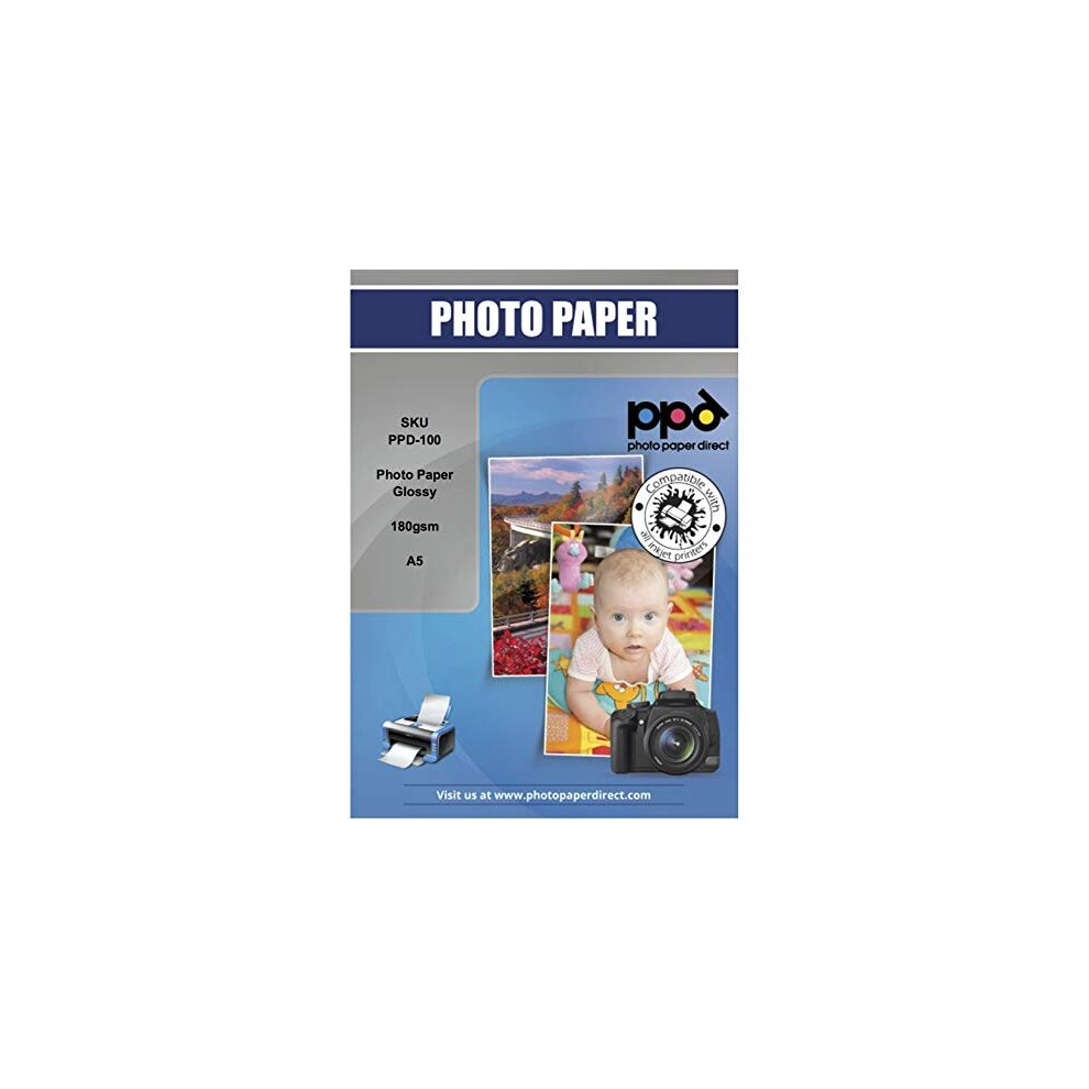 PPD 100 Sheets A5 Inkjet Premium Glossy Photo Paper 180gsm Instant Dry Water-Resistant PPD-100-100 True photo quality Paper. Coated with high...