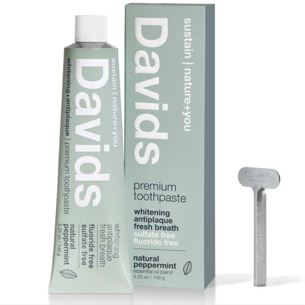 DavidsNaturalWhiteningToothpaste,Antiplaque,FluorideFree,SLSFree,Peppermint,5.25OZMetalTube,TubeRollerIncluded Description...