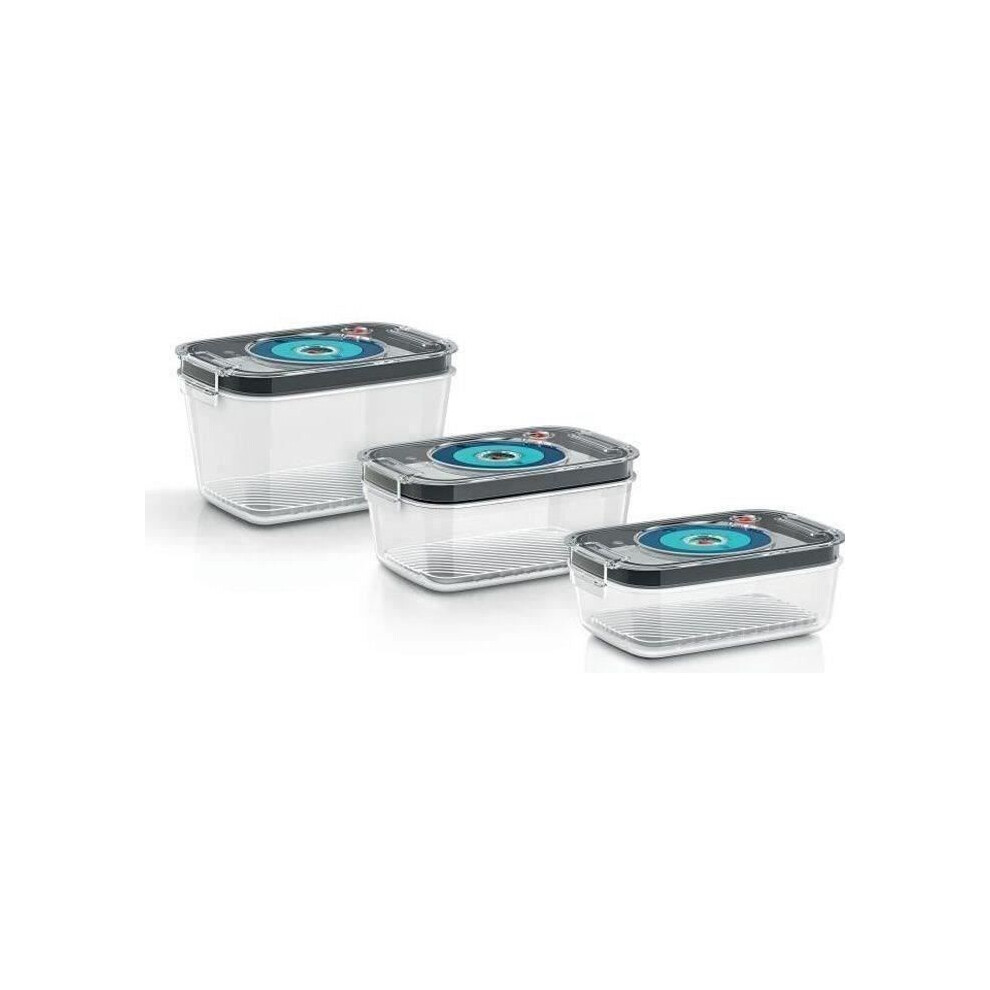 Discover the set of 3 airtight vacuum storage boxes from BOSCH, with capacities of 0.7 L, 1.0 L, and 1.5 L. Each box is equipped with a drip tray...