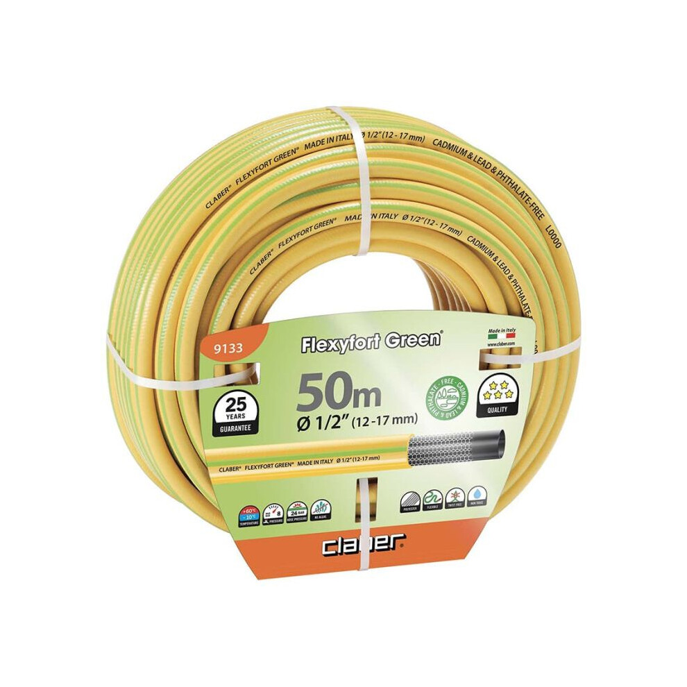 This suction hose is a perfect tool for domestic waterworks, water filters, garden pumps and other water management systems. The garden hose is made of high-quality PVC, which is durable. The water ho more→se is also equipped with a foot valve and a strainer to prevent the entry of larger debris. Colour: Green Material: PVC, brass Length: 15 m Hose inner diameter: 1" (25 mm) Hose outer diameter: 1.1" (29 mm) Hose wall thickness: 2 mm Weight: 3605 g Threaded connection: 1" Working pressure: 6 bar Operating temperature: between -5°C and 60°C Burst pressure: 18 bar (at 20°C)