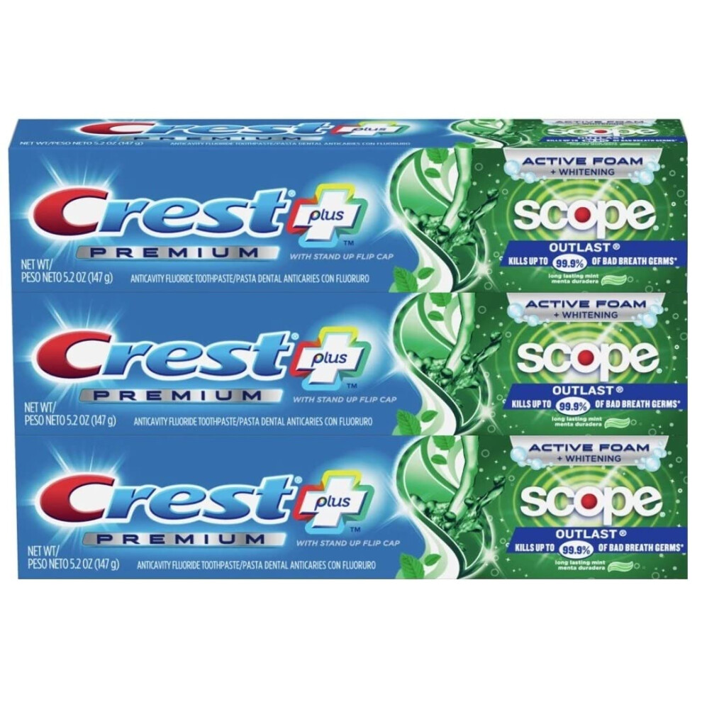 Crest Premium Plus Scope Outlast toothpaste uses an Active Foam + Whitening formula that helps fight cavities and tartar all while working to remove...