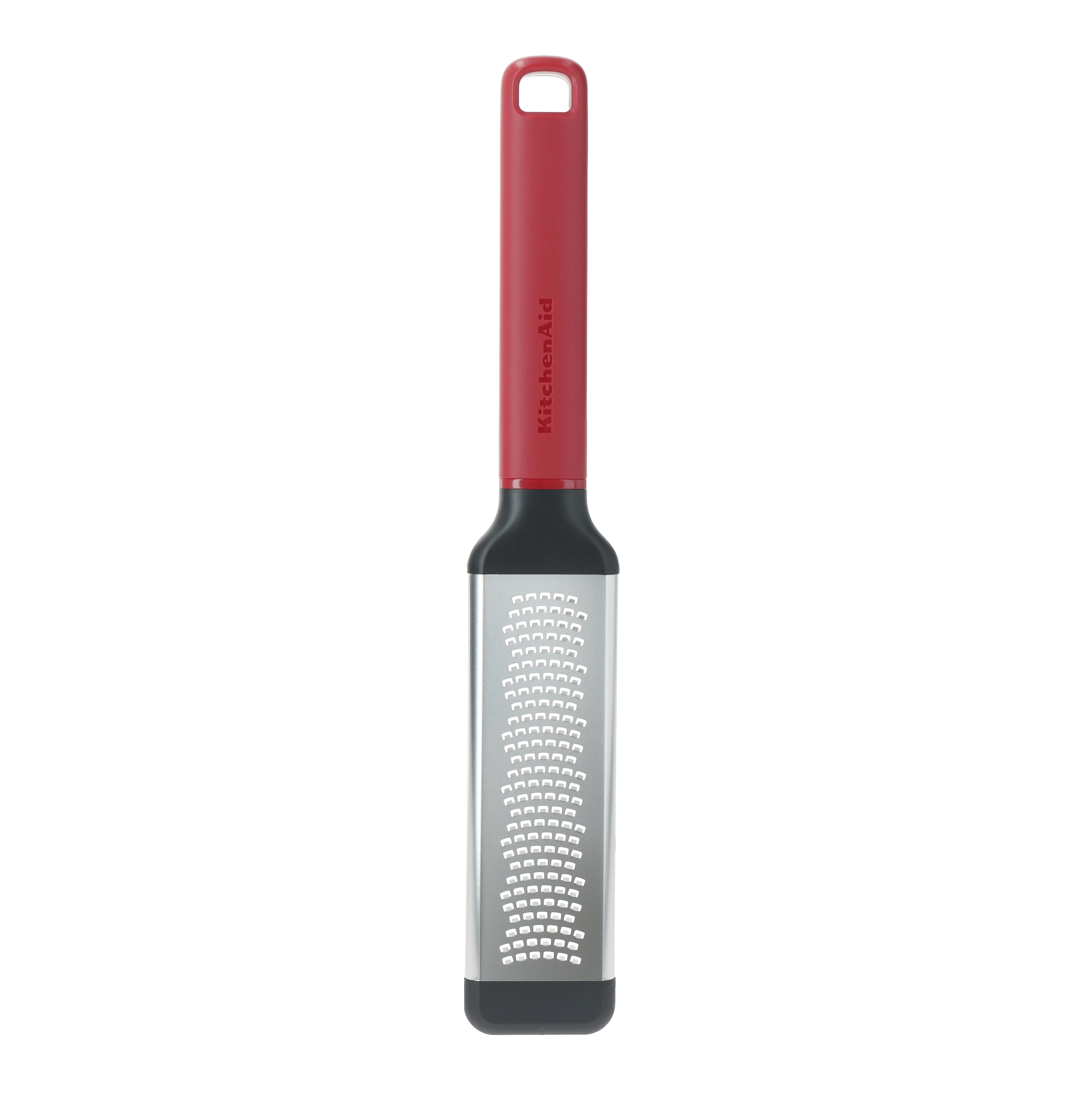 From KitchenAid, the Fine Grater in Empire Red brings a considered finish to everyday prep, with a precisely weighted, ergonomic handle designed for comfort, balance and control. A built-in hanging lo more→op keeps it easy to store between uses, while the debossed logo adds a refined touch. Designed for fine grating and zesting, the grater head features micro-serrations that work in both directions for efficient results. It’s well suited to ingredients such as ginger and nutmeg, as well as zesting lemons, limes and other fruits. For added stability on the worktop, a cushioned non-slip foot helps keep the grater steady whether you’re working directly into a bowl, over a cutting board, or on any flat…