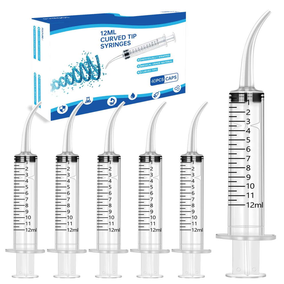 40Pack 12ml Dental Syringe with Curved Tip for Oral Dental Care, Oral Irrigator Syringe for Dental Cleaning ãÂÂPackage IncludedãÂÂ40Pack 12ml curved...