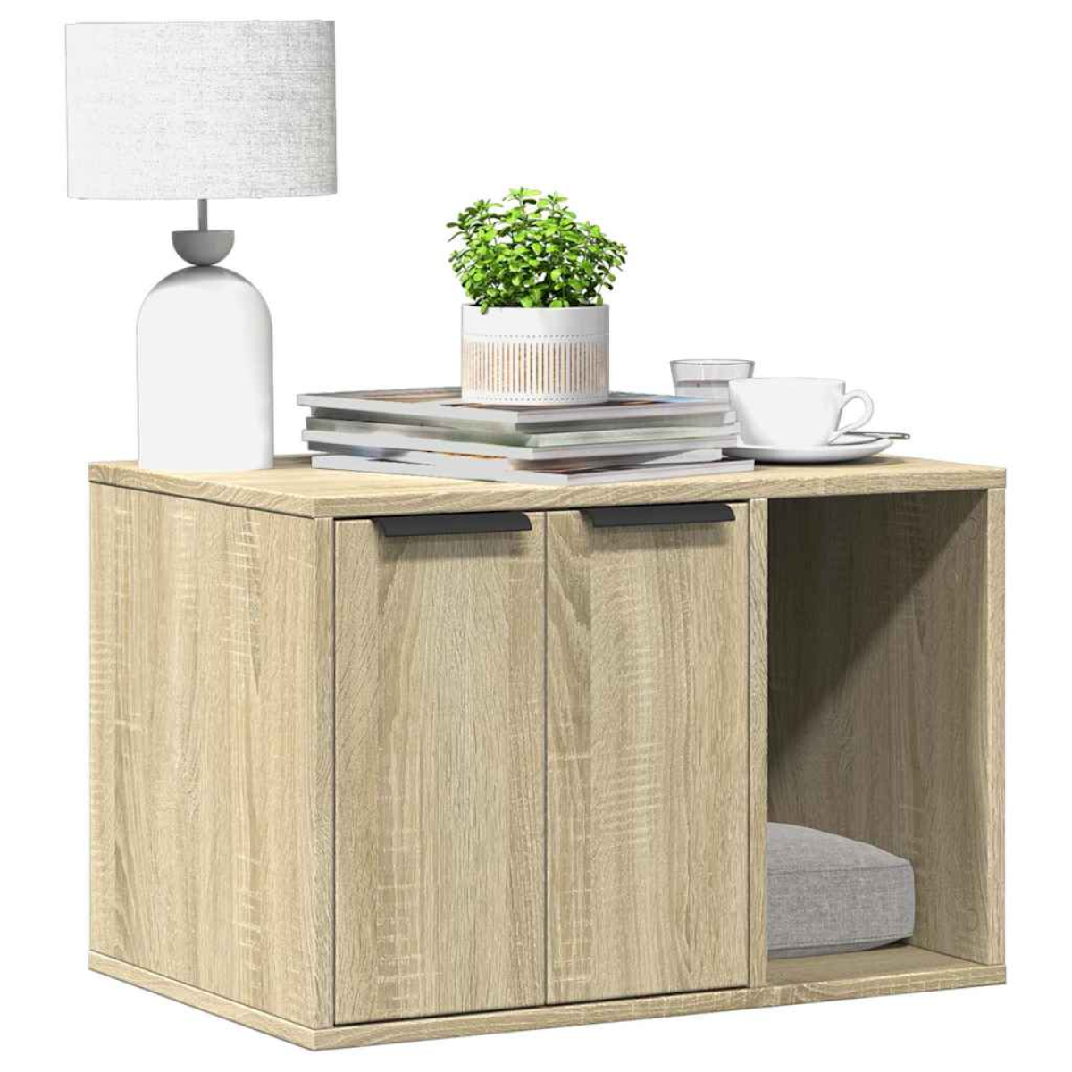 VidaXL Cat Litter Box Enclosure Sonoma Oak 60x40x40 cm Engineered Woodfrom £37.68 up to £37.81 Compare prices2→Give your cat a cosy private space with the cat litter box enclosure while keeping the style of your home consistent! Stable and durable material: Engineered wood is a durable and stable material with more→a smooth surface that is resistant to moisture, warping, and splitting, making it a reliable choice for various projects. Hidden design: This cat litter box enclosure allows you to hide a litter box or cat bed inside, keeping your home tidy and seamlessly blending with your space. Versatile applications: The litter box furniture not only serves as a cosy cat house but also functions as a side table or a practical storage cabinet, while the top platform provides an ideal space for displaying photo …