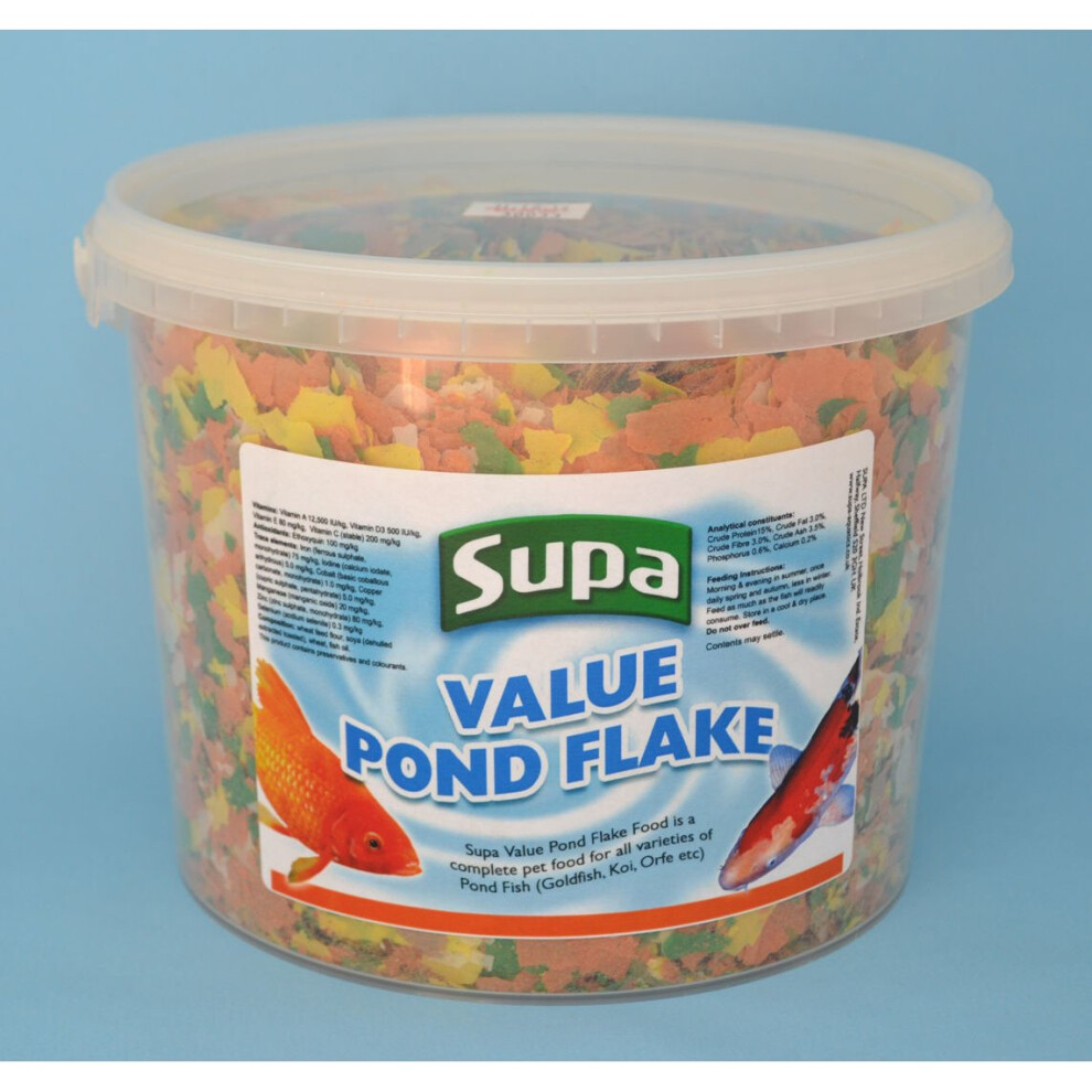 Supa Value Pond Flake Food 3 Litre 38/3Supa Value Pond Flake Food 3 Litre is a complete pet food forall varieties of Pond Fish.Price from £11.35 up to £14.00 Compare prices and buy Supa Value Pond Flake Food 3 Litre 38/3 Onbuy.com (United Kingdom) →£11.00Onbuy.com (United Kingdom) →£14.00Compare prices2→