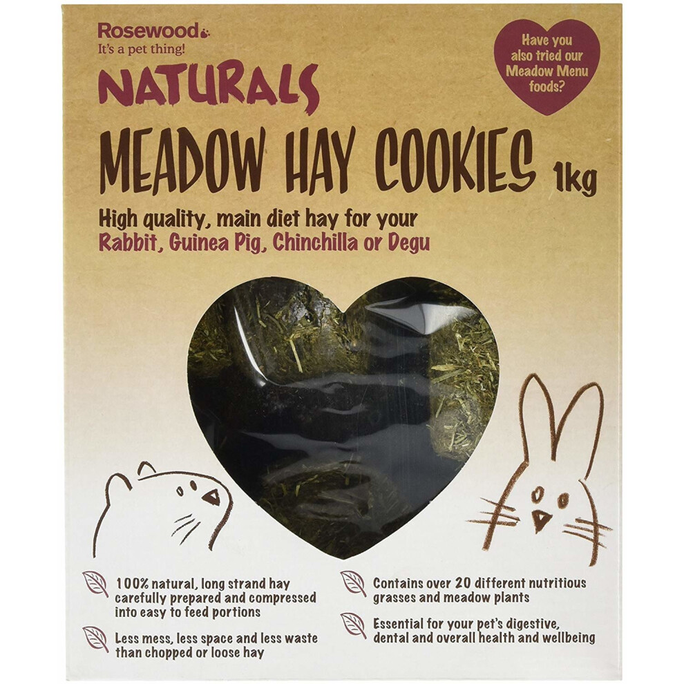 Rosewood Naturals Meadow Hay Cookies, 1kg 76391Highest quality, long strand hay compressed in to easy to feedportions for rabbits, guinea pigs, chinchillas and degus Less mess, less space and... £8.19Onbuy.comDelivery: in United Kingdom ReportBuy!