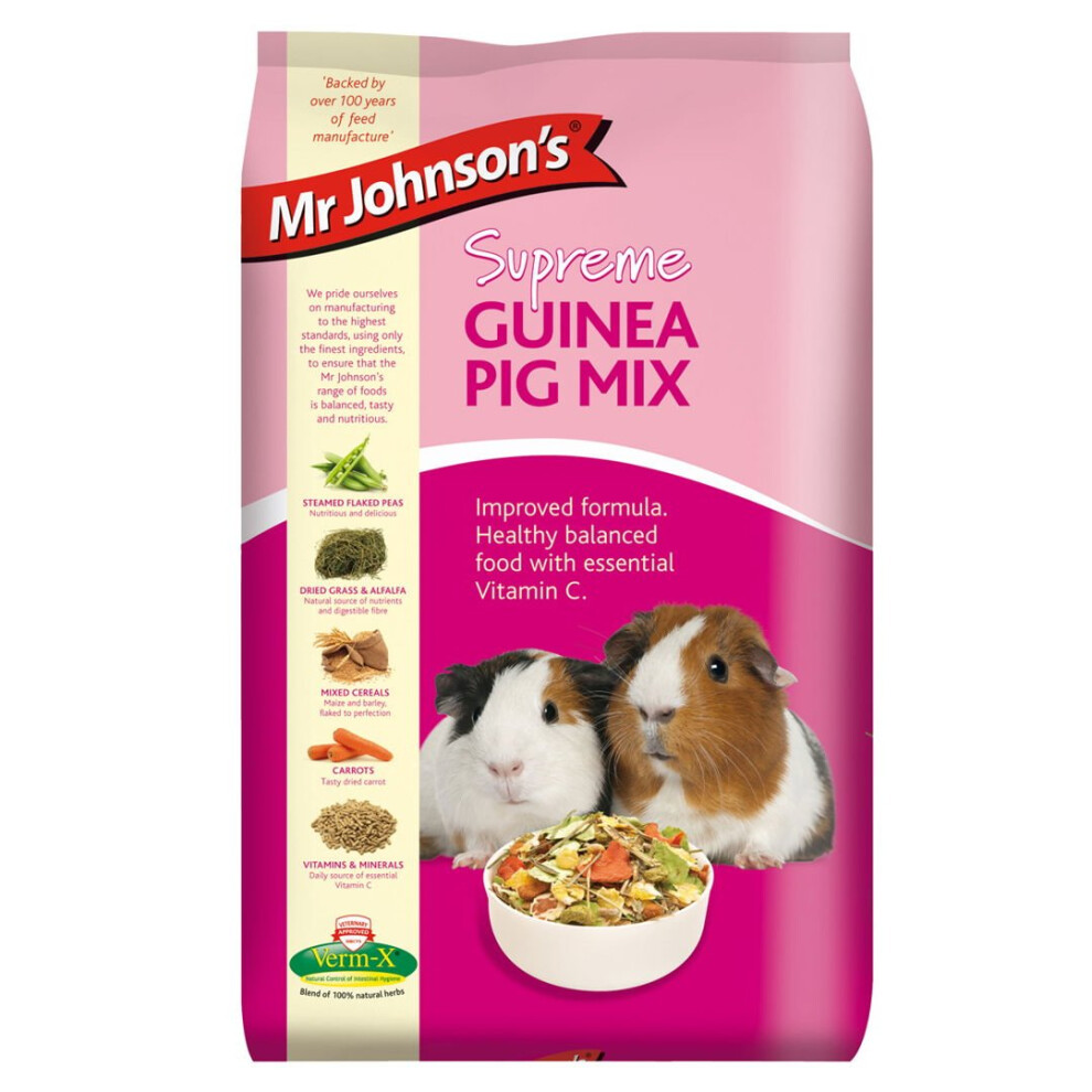 Mr Johnson's Supreme Guinea Pig Mix 900g MS3SG09 (Pack of 6)Mr Johnson's Supreme GUINEA PIG MIX is a fibrous, nutritious andwholesome blend of steam flaked peas, cereals, grass, alfalfa,pellets and... £20.87Onbuy.comDelivery: in United Kingdom ReportBuy!