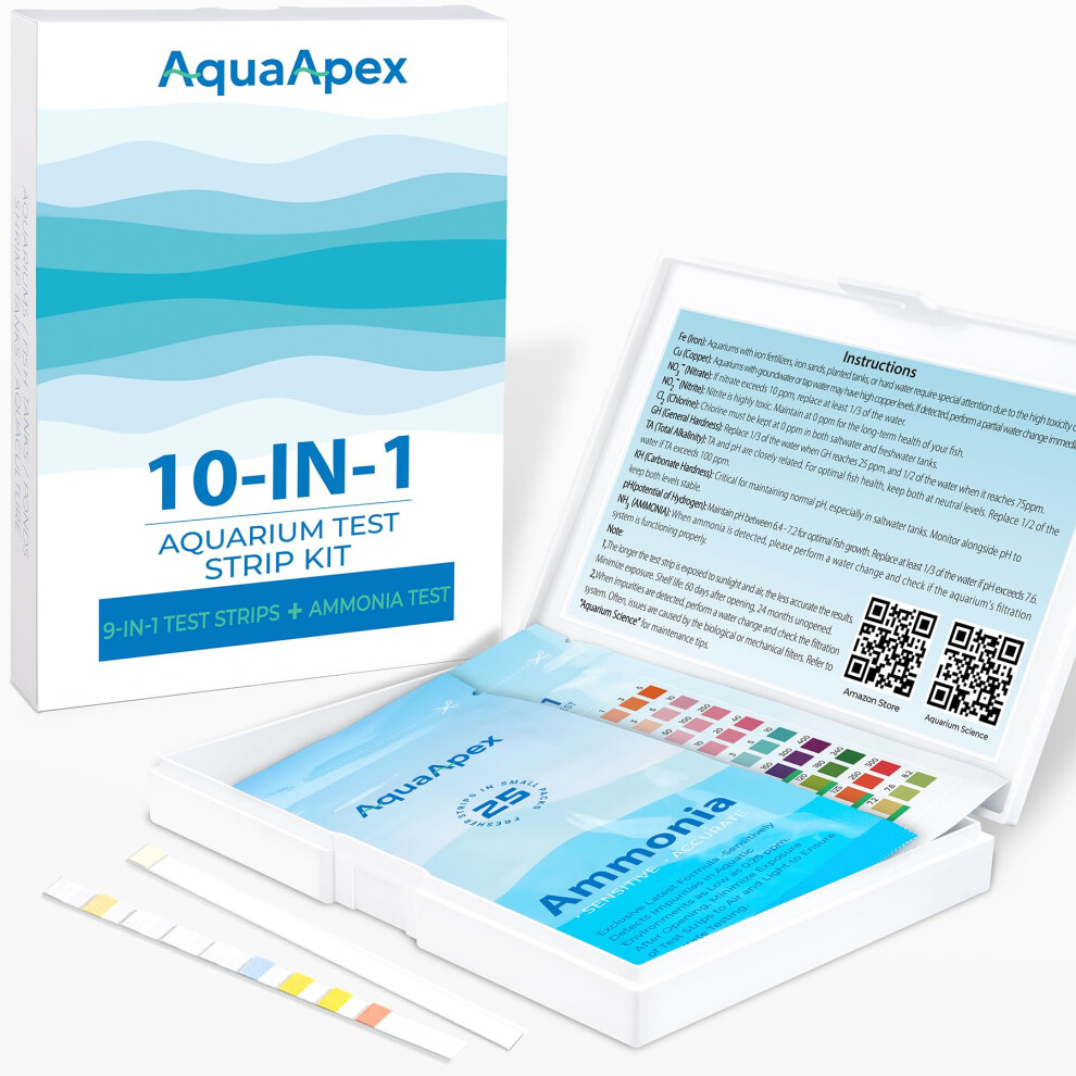 10-in-1 Aquarium test strips for F (25 Multi-Test + 25 Ammonia strips)10-in-1 Aquarium test strips (25 Multi-Test + 25 Ammonia strips) for Freshwater & Saltwater | Ammonia test kit aquarium for Fish tank,ponds |... £20.81Onbuy.comDelivery: in United Kingdom ReportBuy!
