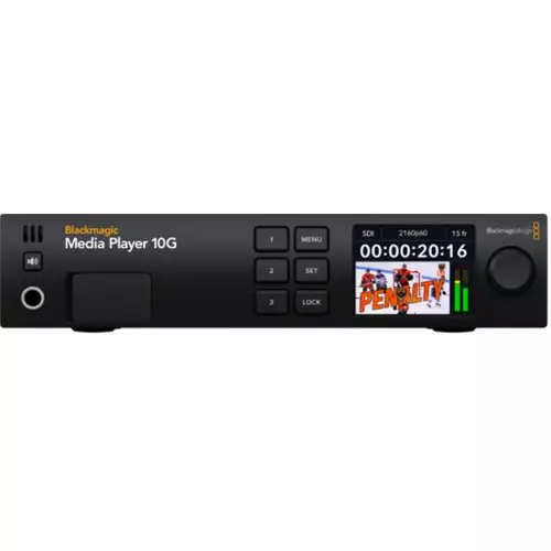 Blackmagic Design Media Player 10G video capturing device Thunderbolt BDLKULSTMP010Gfrom £815.99 up to £909.79 Compare prices4→NOW YOU CAN USE DAVINCI RESOLVE 19 AS A MEDIA PLAYER AND REPLAY SOLUTION Blackmagic Media Player is a capture and playback solution for Thunderbolt computers that are specifically designed for more→playout to live production switchers or large broadcast systems. However it does much more than just video in and out because you also get 10G Ethernet and power to your computer! You get dual 12G-SDI outputs for fill and key playback 12G-SDI capture and 10G Ethernet for accessing network storage and laptop power over a single Thunderbolt connection! There is also an independent Thunderbolt connection on the front so you can simply walk up and plug in your laptop! It also supports full DeckLink API features >…