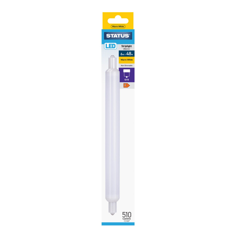 STATUS 6W LED Striplight, 284mm Warm White 3000K, 510 Lumens, S15 Cap,11.65Buy!£Onbuy.comDelivery: in United Kingdom ReportStatus 6W LED striplight for efficient modern lighting Status provides a reliable LED replacement for traditional fluorescent striplights,