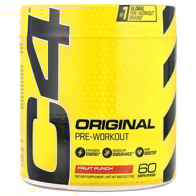 Cellucor , C4 Original, Pre-Workout, Fruit Punch, 6.3 oz (180 g)#1 Global Pre-Workout Brand‡ Explosive Energy Muscle Endurance Pump Booster Naturally and Artificially Flavored Dietary Supplement 30...Price from £29.51 up to £58.49 Compare prices and buy Cellucor , C4 Original, Pre-Workout, Fruit Punch, 6.3 oz (180 g)iHerb.com (United Kingdom) →£30.00OnBuy.com (United Kingdom) →£58.00Compare prices2→