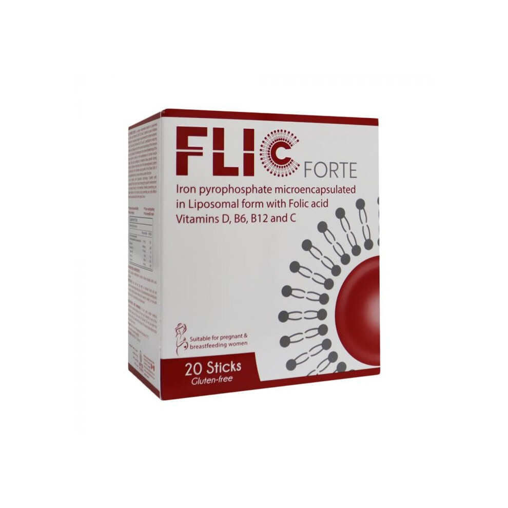Flic Forte Sticks 20's AO100005991Iron pyrophosphate microencapsulated in liposomal form Contains Folic acid, Vitamin D, B6, B12 and C Suitable for pregnant and breastfeeding women £56.99Onbuy.comDelivery: in United Kingdom ReportBuy!