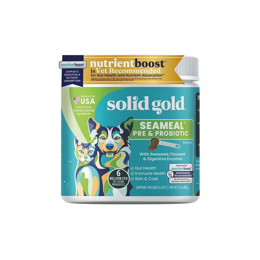 Solid Gold SeaMeal Pre & Probiotic, For Dogs & CatsWith Seaweed, Flaxseed & Digestive Enzymes Gut Health Immune Health Skin & Coat 6 Billion of Living Probiotics Powered By...Price from £15.10 up to £45.49 Compare prices and buy Solid Gold SeaMeal Pre & Probiotic, For Dogs & Cats iHerb.com (United Kingdom) →£15.00OnBuy.com (United Kingdom) →£45.00Compare prices2→