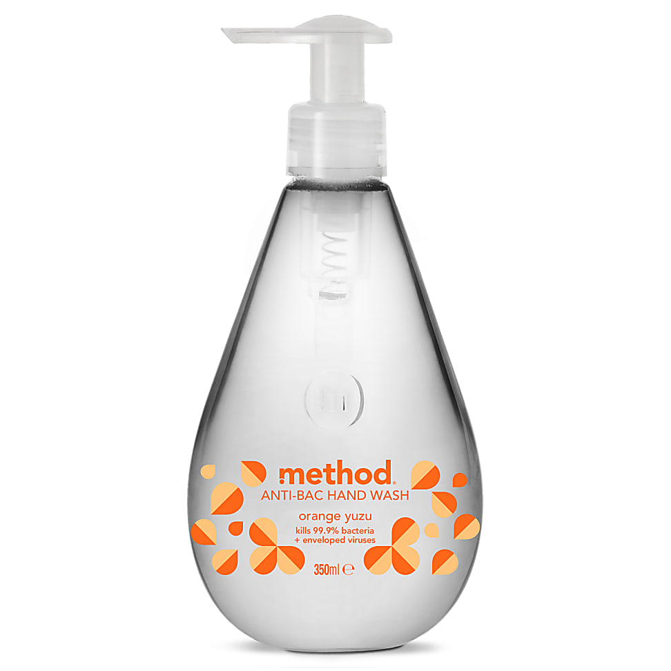 Method Anti-Bac Hand Wash - Orange Yuzu MANTBACORGfrom £4.00Compare prices2→Method Anti-Bac Hand Wash is formulated with consciously chosen ingredients that kill 99.9% of bacteria. Made with biodegradable ingredients, this gentle yet effective formula removes dirt and germs more→while keeping skin soft. Infused with a zesty, orange yuzu fragrance, it leaves hands smelling great. Fresh and zesty Orange Yuzu scent Kills 99.9% of bacteria and enveloped viruses Biodegradable formula Part of the Method Handcare range How to use: Wet hands. Pump 3 times to apply minimum 3 ml of liquid on the hands. Rub hands in a washing motion and continue washing motion for at least 60 seconds, rinse off with tap water and dry hands with a clean towel.