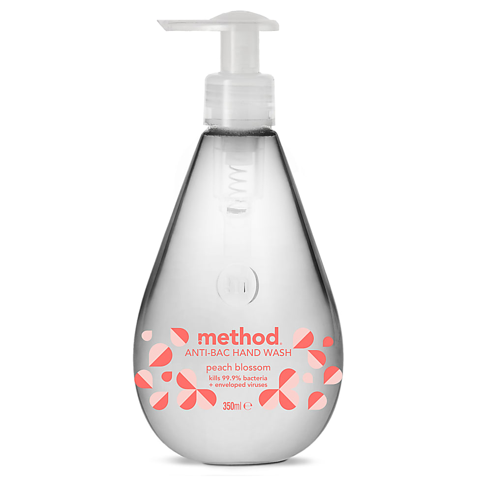 Method Anti-Bac Hand Wash - Peach Blossom MANTBACPCH3.60Buy!£BigGreenSmile.comDelivery: to United Kingdom ReportMethod Anti-Bac Hand Wash is formulated with consciously chosen ingredients that kill 99.9% of bacteria. Made with biodegradable ingredients, this gentle yet effective formula removes dirt and germs more→while keeping skin soft. Infused with a fruity, peach blossom fragrance, it leaves hands smelling great. Fruity Peach Blossom scent Kills 99.9% of bacteria and enveloped viruses Biodegradable formula Part of the Method Handcare range How to use: Wet hands. Pump 3 times to apply minimum 3 ml of liquid on the hands. Rub hands in a washing motion and continue washing motion for at least 60 seconds, rinse off with tap water and dry hands with a clean towel.