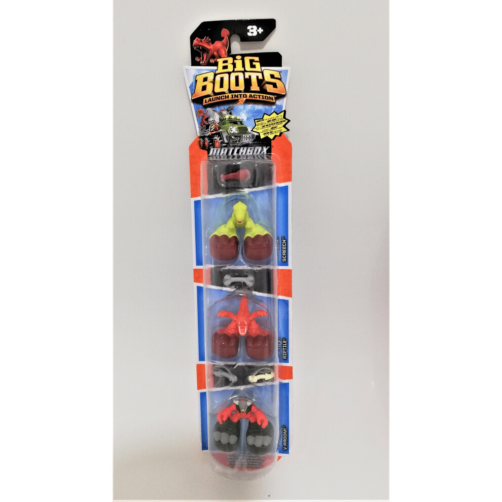 Matchbox Big Boots 3-Pack Figure Set - DINO RAIDERS9.99Buy!£Onbuy.comDelivery: in United Kingdom ReportMatchbox Big BootsTM 3-Pack Action Figures Dino Raiders team isbig fun! Figures come with different tools, but they always land ontheir feet. All...