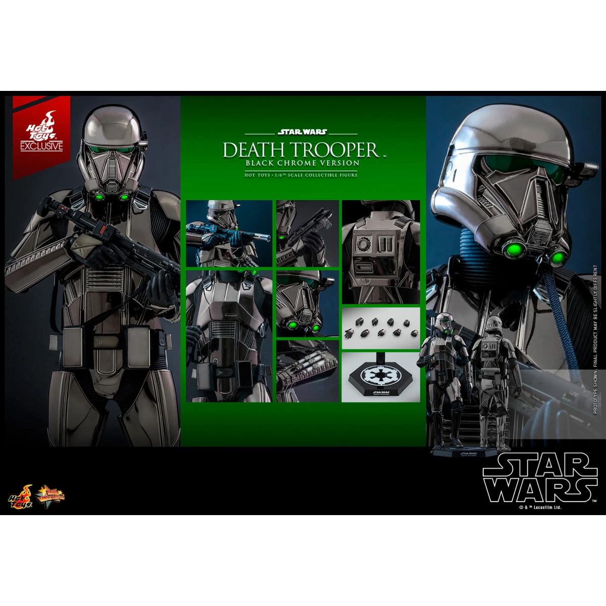 Death Trooper Star Wars Action Figure Black Chrome 1:6 Scale Hot Toys 909531323.99Buy!£BuyToGive.co.ukDelivery: in United Kingdom ReportDeath Trooper Star Wars Action Figure Black Chrome 1:6 Scale Hot Toys 909531 2022 Convention Exclusive Elite Imperial soldiers, Death Troopers are encased in specialized stormtrooper armour with a dar more→k, ominous gleam. These troops serve as bodyguards and enforcers for figureheads including Director KrennicTM, a highly placed officer within the Advanced Weapons Research division of the Empire, and later Moff GideonTM and others. Sideshow and Hot Toys are excited to bring a stylish displayable special variant of the Death Trooper Sixth Scale Collectible Figure with black chrome coloured armour design as an exclusive item only available in select markets! This Death Trooper collectible figure