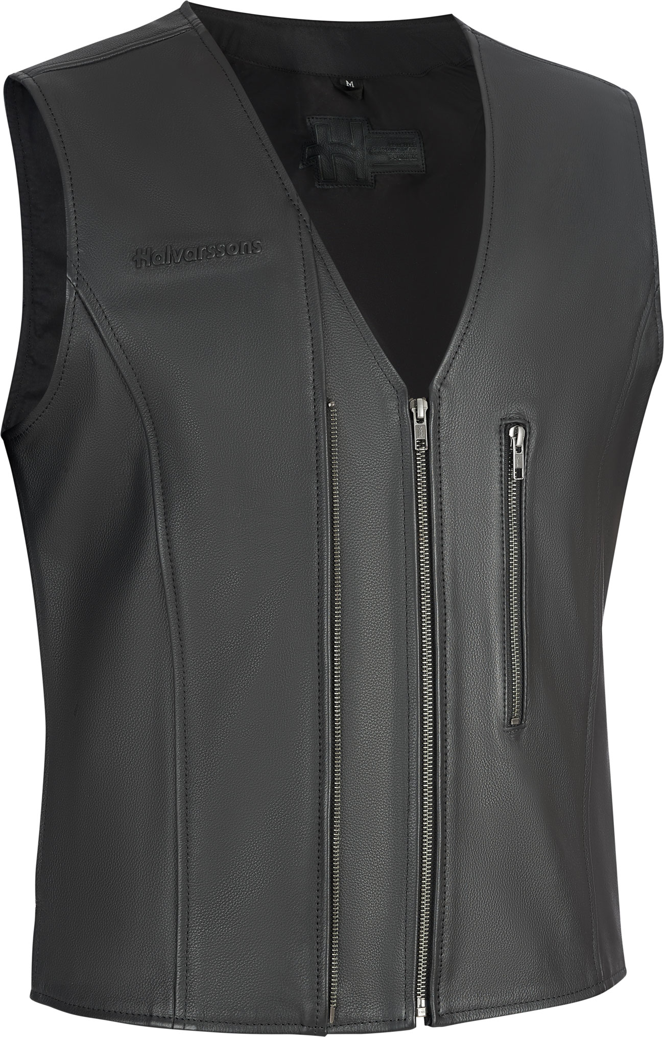 Halvarssons L 710-26020200-3from £71.23 up to £82.75 Compare prices2→Classic black leather vest made from vintage cow leather. Equipped with dual front zippers for easy adjustment and an improved fit across different sizes. Features Cow leather upper Double zip in fron more→t for versatility Stylish metal zippers Chest pocket with metal zipper Space for club patch on back