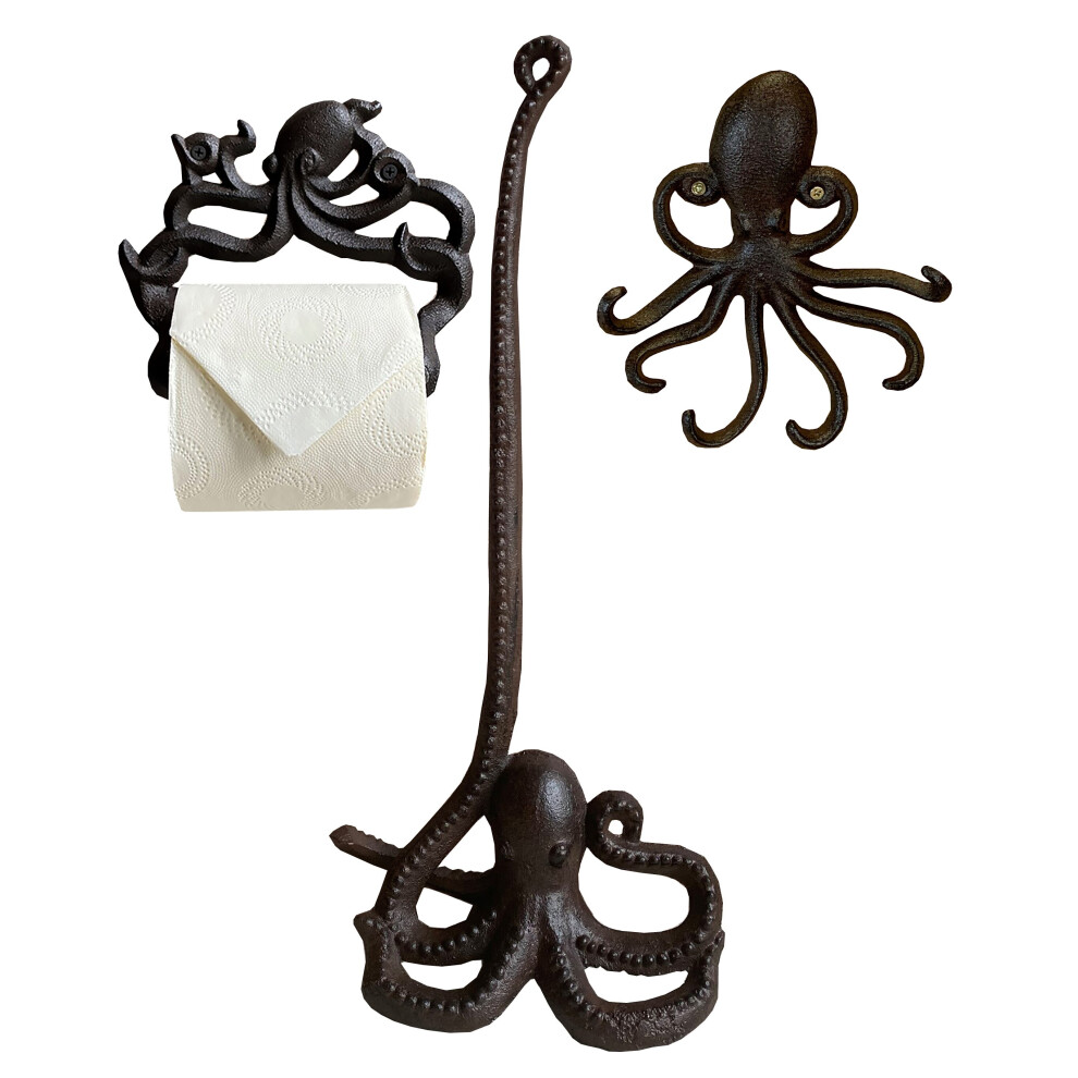 Cast Iron Octopus Wall Dispenser, Floor Loo Roll Holder & Wall Hook BrownA set of Octopus themed cast iron loo ornaments that are helpful practical additions to any home. The floor loo roll holder has one tentacle... £29.98Onbuy.comDelivery: in United Kingdom ReportBuy!