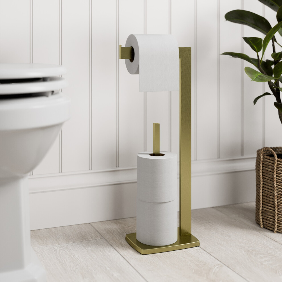 Purefino Brushed Brass Freestanding Toilet Roll Holder Bathroom Paper Storage Holders Gold OBYCK3692This freestanding toilet roll holder has been designed not only as a toilet roll dispenser but as a holder as well so they can be neatly stacked on... £27.98Onbuy.comDelivery: in United Kingdom ReportBuy!