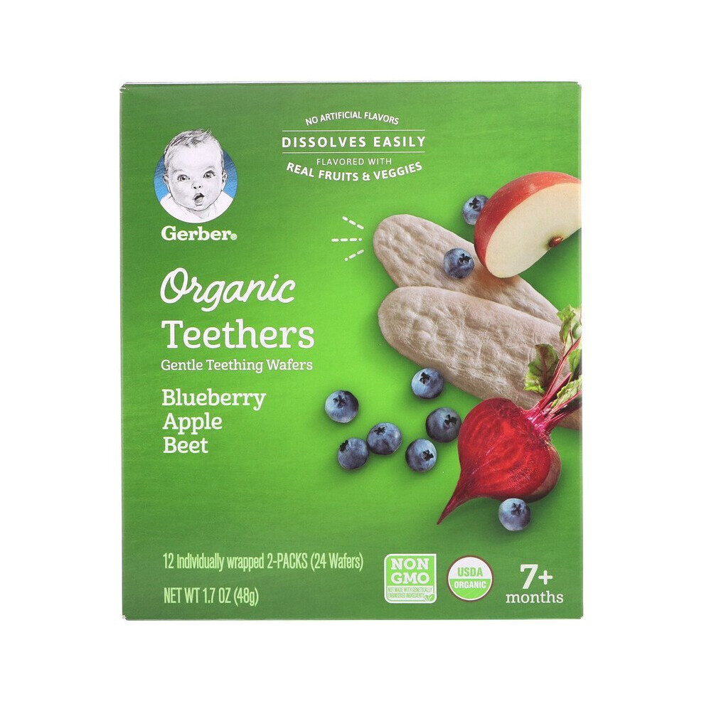 Gerber , Teething Wafers, 7+ Months, Blueberry Apple Beet, 12 PacksDescription No Artificial Flavors Dissolves Easily Flavored with Real Fruits & Veggies 12 Individually Wrapped 2-Packs (24 Wafers) Non GMO -...Price from £6.70 up to £16.99 Compare prices and buy Gerber , Teething Wafers, 7+ Months, Blueberry Apple Beet, 12 Packs iHerb.com (United Kingdom) →£7.00Onbuy.com (United Kingdom) →£17.00Compare prices2→