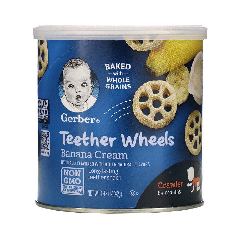 Gerber , Teether Wheels, 8+ Months, Banana Cream, 1.48 oz (42 g)Description Baked with Whole Grains Naturally Flavored with Other Natural Flavors Non GMO - Not Made with Genetically Engineered Ingredients Kosher... £9.20Onbuy.comDelivery: in United Kingdom ReportBuy!