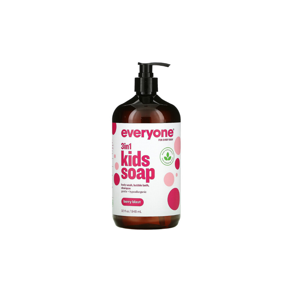 Everyone , 3-In-1, Kids, Berry Blast, 946mlPack of 1 x Everyone, 3 In 1 Kids Soap, Body Wash, Bubble Bath, Shampoo, Berry Blast, 946ml everyone is welcome™ Certified B Corporation...Price from £14.45 up to £19.95 Compare prices and buy Everyone , 3-In-1, Kids, Berry Blast, 946ml iHerb.com (United Kingdom) →£14.00OnBuy.com (United Kingdom) →£20.00Compare prices2→