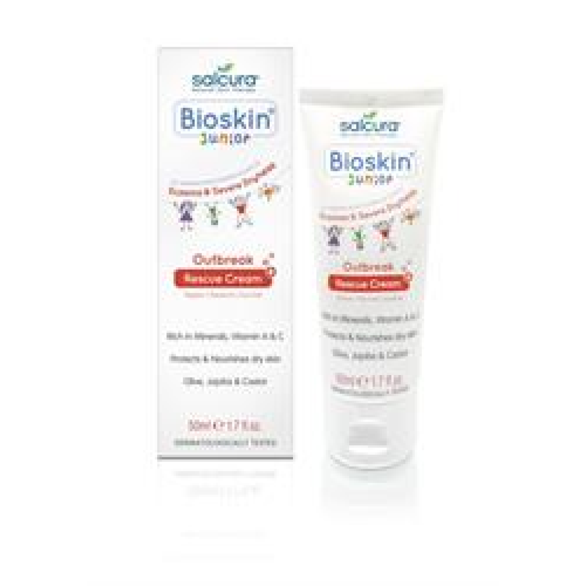 Junior Salcura Bioskin Outbreak Rescue Cream 50mlOur unique award-winning Bioskin Junior Outbreak Rescue Cream is designed for those little ones whose skin needs a little more protection and hydration. Our Rescue Cream will soothe and support the dry, itchy and irritated skin. Containing 10 different natural oils and extracts like unique volcanic mineral Zeolite, Castor and Olive, the Rescue Cream will: Relieve itchiness & soothe dryness Detoxify the skin from allergens Bind moisture into the skin Our Rescue Cream is also suitable for babies and children who may be prone to eczema, dermatitis and other skin allergies. £10.49BuyToGive.co.ukDelivery: in United Kingdom ReportBuy!
