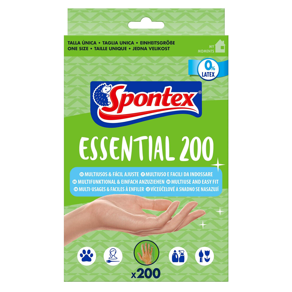 Spontex Essential 200 Glove 160g 1296313310.71Buy!£OnBuy.comDelivery: in United Kingdom ReportMade of polyethylene with slight non-slip embossing. They are ideal for quick tasks, spot uses and for food contact. They are designed for easy on...