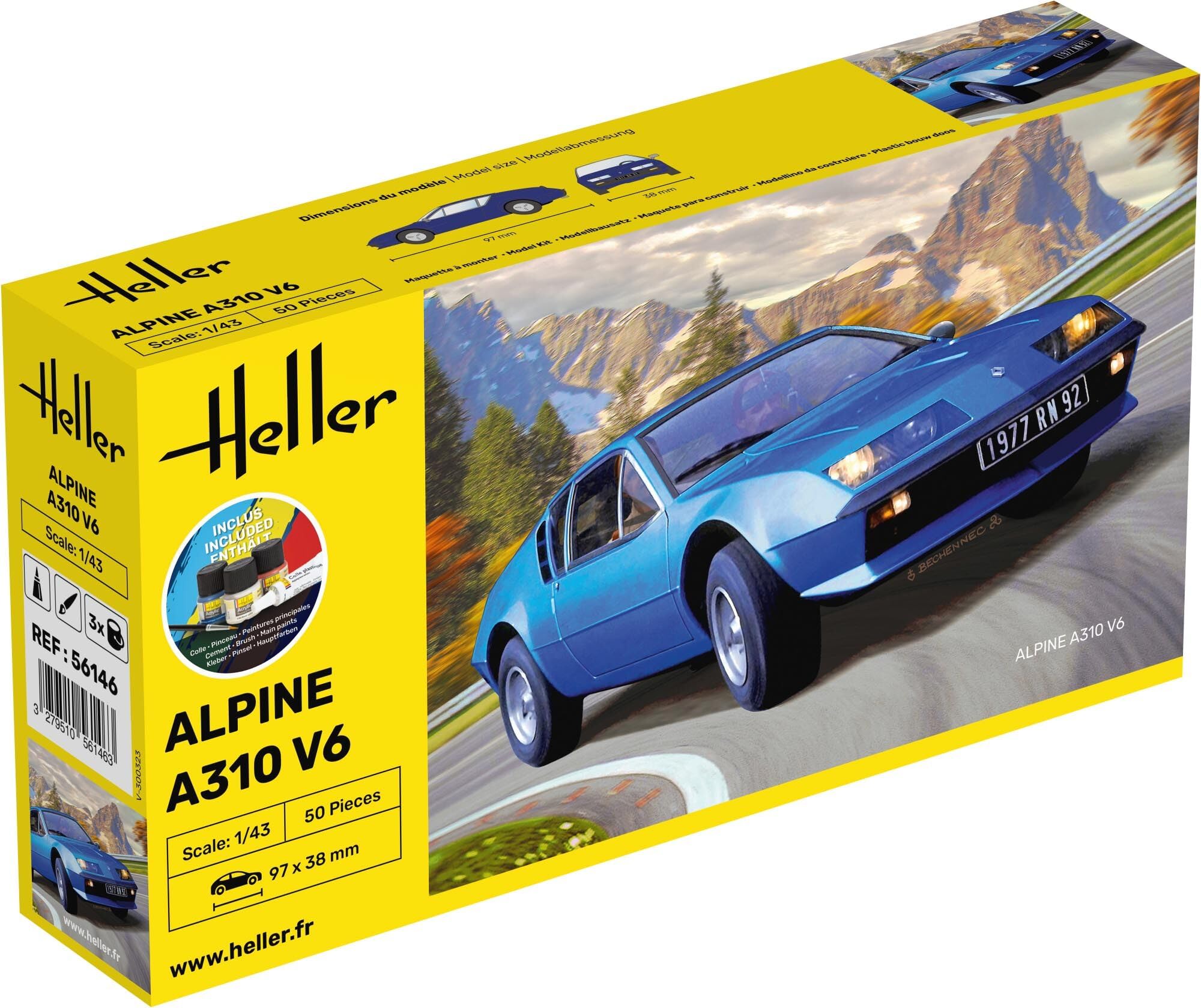 Heller JOUSTRA Car Model: Starter Kit: Alpine A310 -5614612.17Buy!£rarewaves.comDelivery: in United Kingdom ReportHELLER JOUSTRA Car Model: Starter Kit: Alpine A310Assemble the Alpine A310 car model from Heller. Box contents: 50 piece model- glue-- brush- main paints- decals - scale: 1:43. Model size: 9.6 x 3.8 c more→m. Minimum age: 15 years