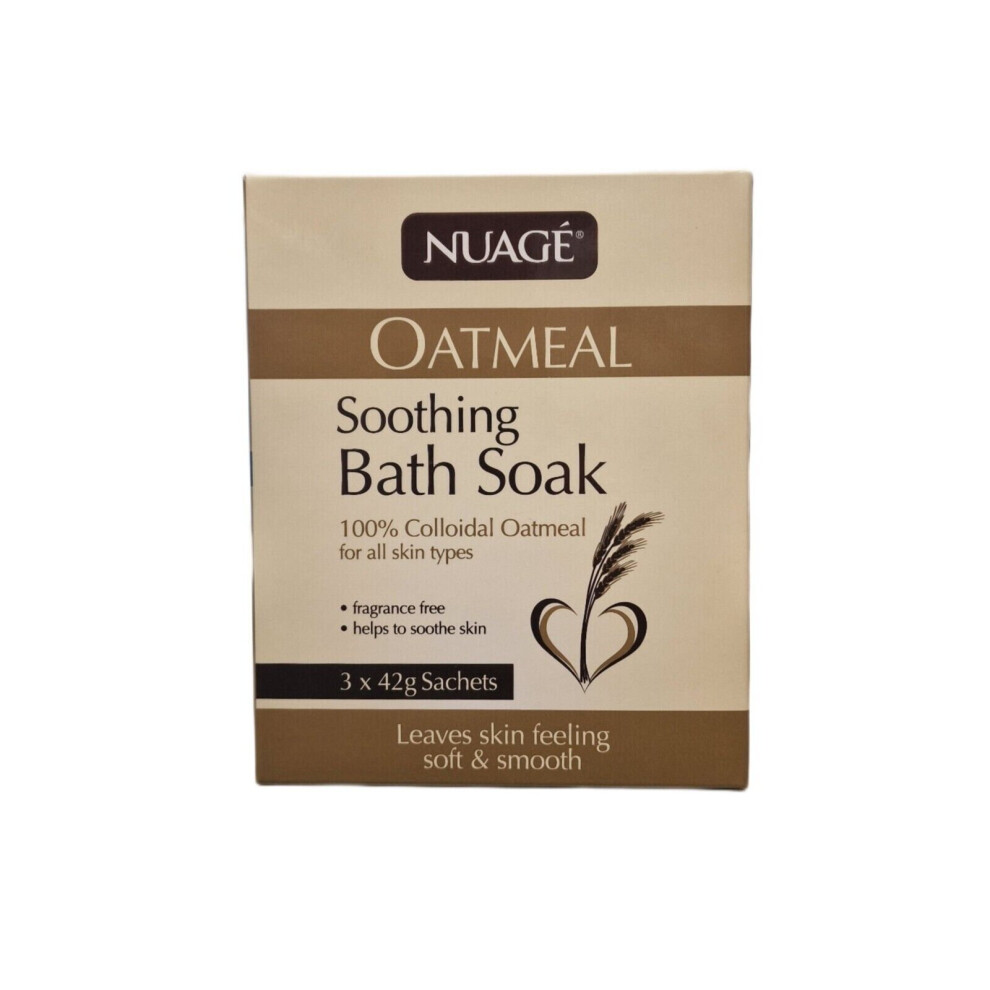 Nuage Oatmeal Soothing Bath Soak 3 X 42g Sachets Helps to Soothe Skin2.19Buy!£OnBuy.comDelivery: in United Kingdom ReportNuage Oatmeal Soothing Bath Soak is made of 100% pure natural colloidal oatmeal, which is milled to an ultra-fine powder. When dispersed in water,
