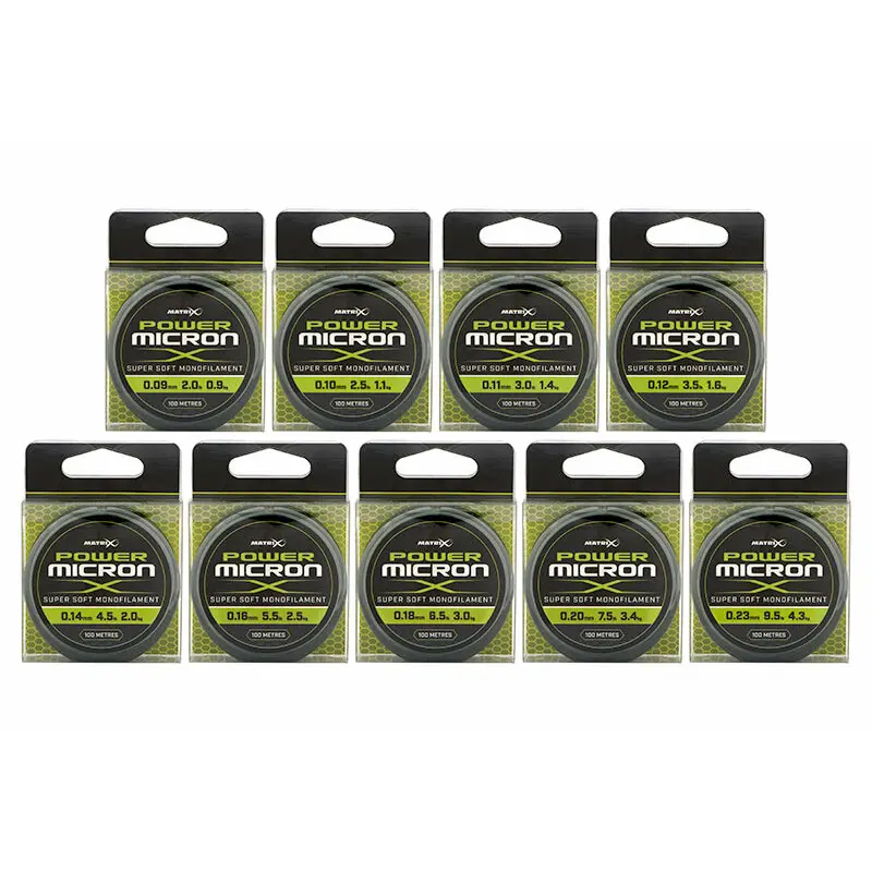 Matrix Power micron monofilament line x 100m GML029from £4.86 up to £24.84 Compare prices3→Nylon with a precise and regular diameter, for line bodies and leadersCompatiblewith feeder and pole fishingBuiltand flexible for perfect presentationsExceptionalresistance toknotsClear almost invisib more→le color23mm- 9.5lb - 4.3kg