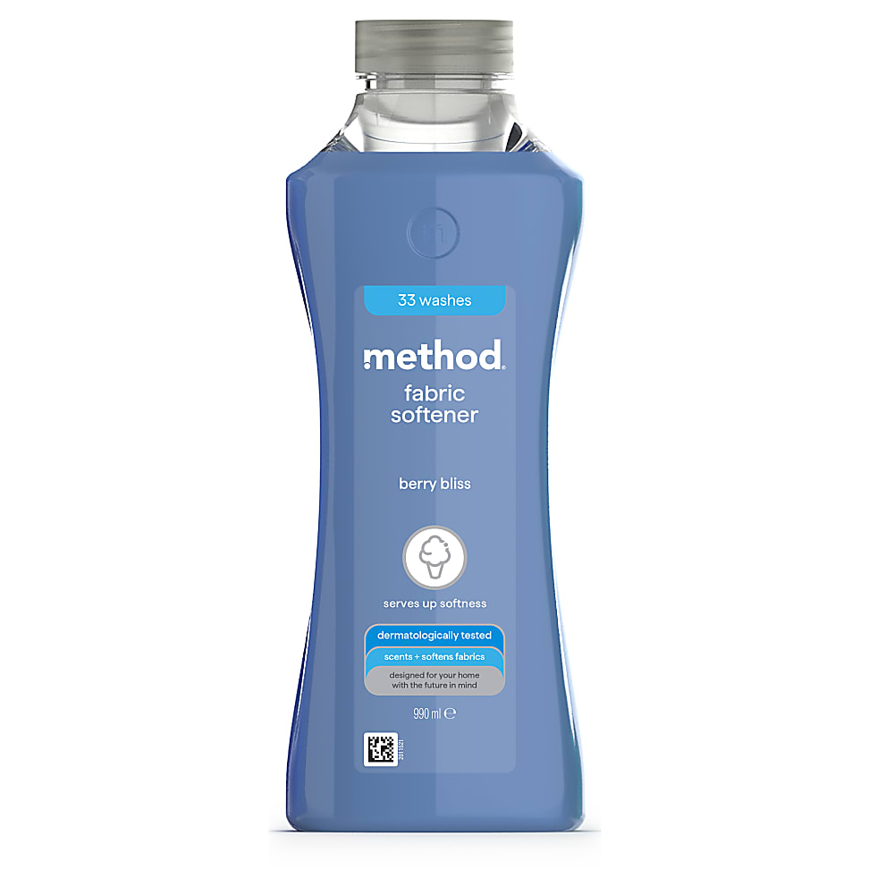 Method Fabric Softener - Berry Bliss 990ml MFSBRYBLS990ML (33 washes)from £4.00Compare prices2→Transform your laundry routine with Method Fabric Softener, designed to soften fabrics and deliver long-lasting, refreshing fragrance. Berry Bliss, fruity fragrance Dermatologically tested Bottle (e more→xc cap) made with 100% recycled plastic Pair with Method's Berry Bliss Concentrated Laundry Detergent for an extra boost of fragrance Part of the Method Laundry range
