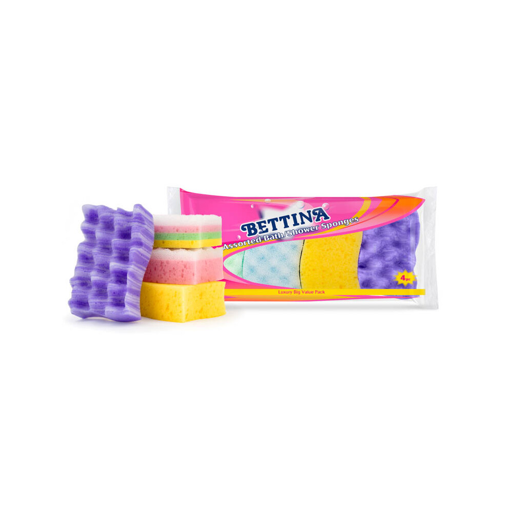 Bettina 4 Piece Multipack Bath & Shower Sponges. B4234.29Buy!£Onbuy.comDelivery: in United Kingdom ReportPack Contains 2 Bath Sponges And 2 Massage Sponges. Colours May Vary