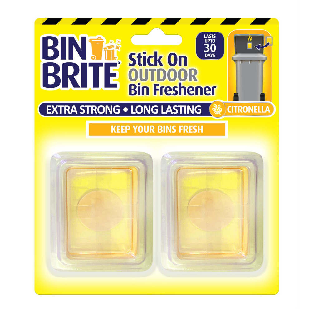Bin Brite Stick On Outdoor Bin Freshener, Citronella2.48Buy!£Onbuy.comDelivery: in United Kingdom ReportBin Brite Stick On Outdoor Bin Freshener keeps bins fresh and clean. Eliminates odours. Extra strong and lasts up to 30 days.