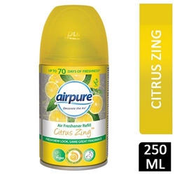 Zing AirPure Citrus Freshmatic Compatible Refill 250ml 148959from £0.98 up to £39.22 Compare prices7→Time release fragrance. Up to 70 days freshness. Long-lasting scents. Several fragrances available.