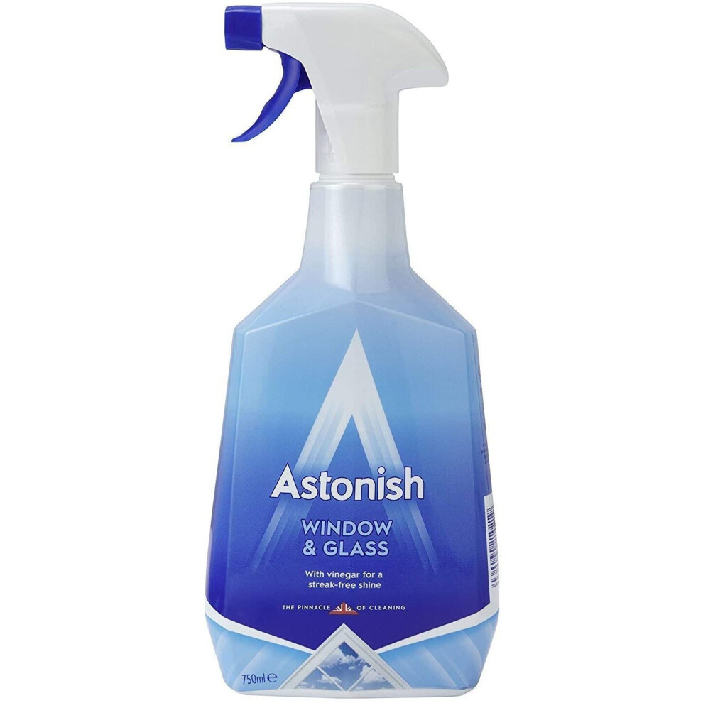 Astonish Window & , 750 ml, No Mess Set of 2from £18.61 up to £18.64 Compare prices1→Product description A hard working cleaner with the sparkling power of vinegar. Cleans & polishes all windows. Non smear, crystal clear finish.