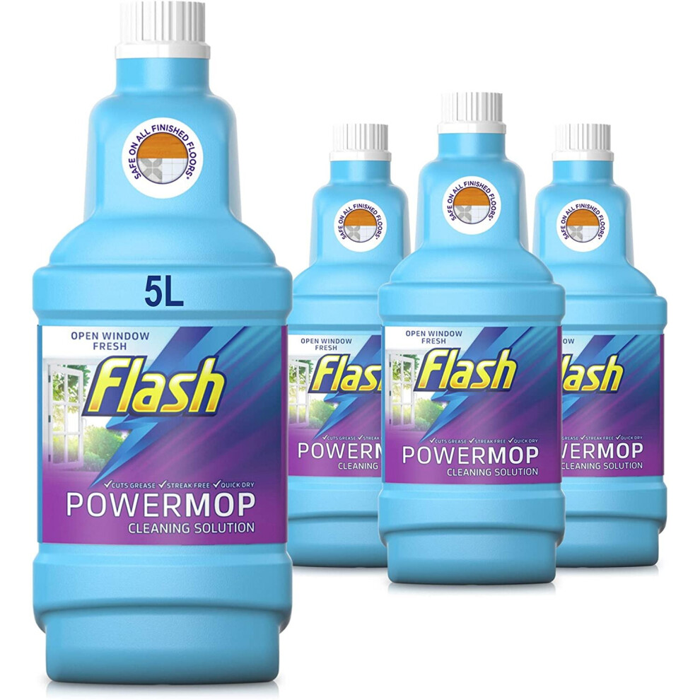 Flash Powermop Refill Liquid, , Fresh, 5 Litres 8.00E+12 (1.25 L x 4)27.23Buy!£Onbuy.comDelivery: in United Kingdom ReportFeatures SafeonWood Trapsdirtandgrimedeeponpadsoitdoesnâtgetpushedaround Speciallydesignedcleaningsolutiontobreakuptough,stickymesses...