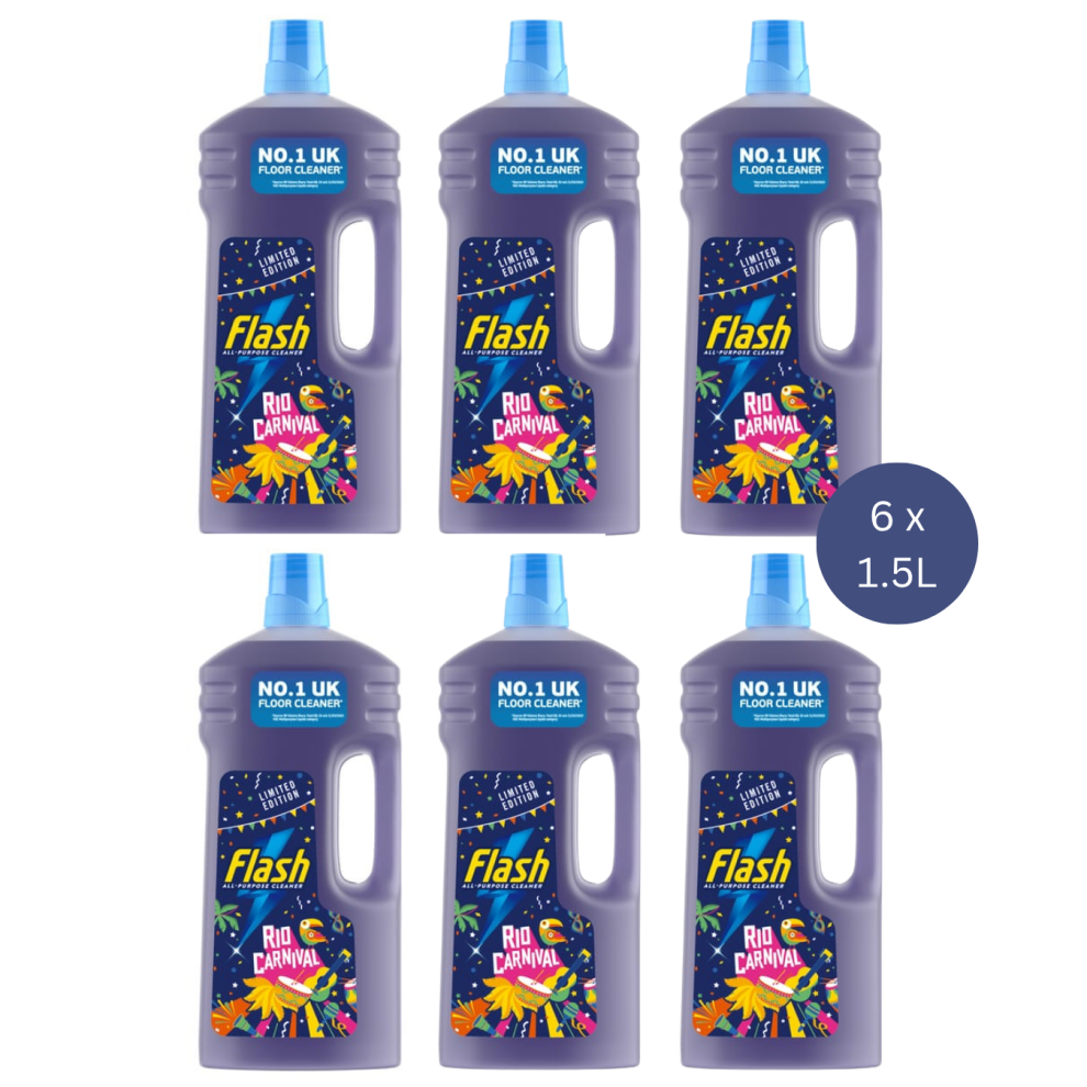 Flash 6 x All Purpose & , Limited Edition Rio Carnival Scent 1.5L19.99Buy!£Onbuy.comDelivery: in United Kingdom ReportFlash All Purpose Floor Cleaner, Rio Carnival Fragrance (6 x 1.5L) Flash Liquid Cleaner removes up to 100% of dirt and grease. Flash Floor Cleaner...