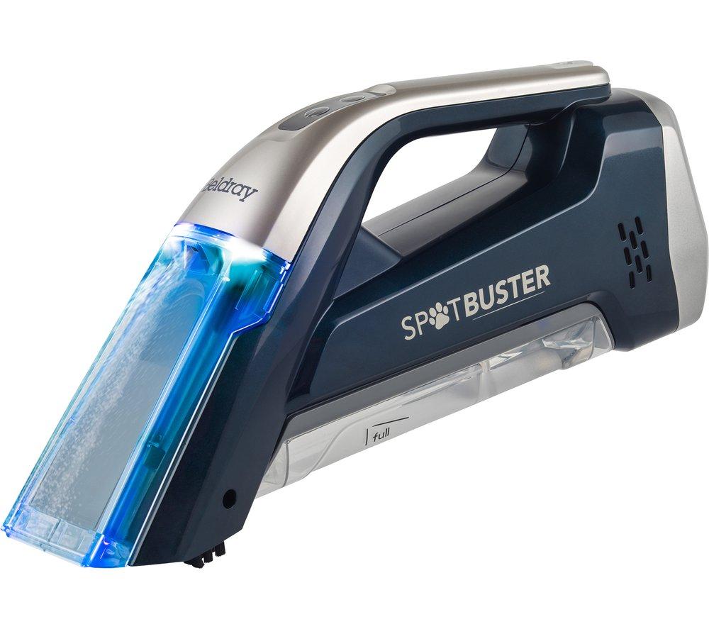 BELDRAY Spot Buster BEL01624 Handheld Vacuum Cleaner - Navy & Platinum, Blue,Silver/Grey58.99Buy!£Currys.co.ukDelivery: to United Kingdom ReportGood to know- This Beldray vacuum has a built-in spray function to lift stubborn spills and pet hair from your carpets and upholstery- Say bye-bye to endless scrubbing - just fill the 110 ml detergent more→tank and watch as the nasty stains disappear- The integrated brush gets deep into fabrics and carpet, so they look properly clean- The 15 minute battery life gives you enough time to vacuum up even big spills