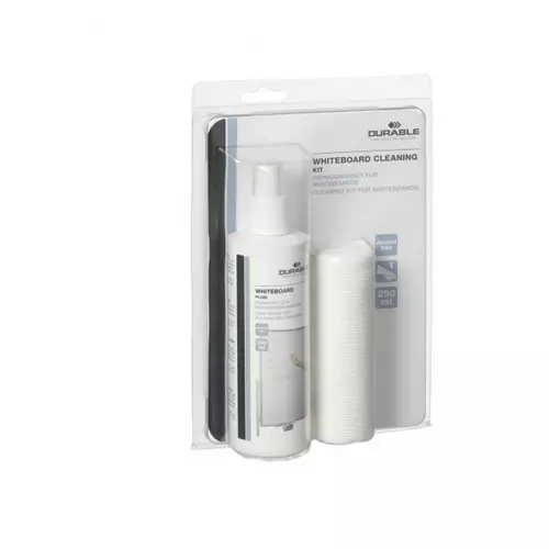 Durable 5833-00 Accessory set DB07026from £5.74 up to £15.99 Compare prices7→Highly effective cleaning solution suitable for use on most types of whiteboard. The fluid gently removes ink residue and leaves the whiteboard sparkling. Cleaning liquid removes dry wipe marker greas more→e and grime. Complete with microfibre cloth 25 x 25cm.