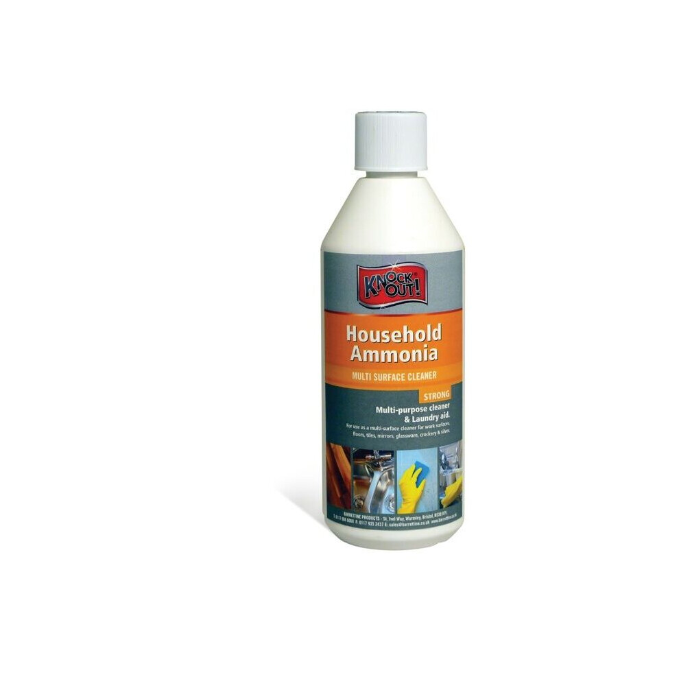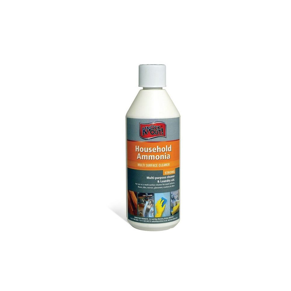 Knockout Household Ammonia 500ml HAA6.50 [HAA6.50]7.50Buy!£Onbuy.comDelivery: in United Kingdom Report500ml Strong multi-purpose cleaner and laundry aid. Cleans and degreoses tiles, work surfaces, stoves, windows, glassware and silver. Wax stripper...